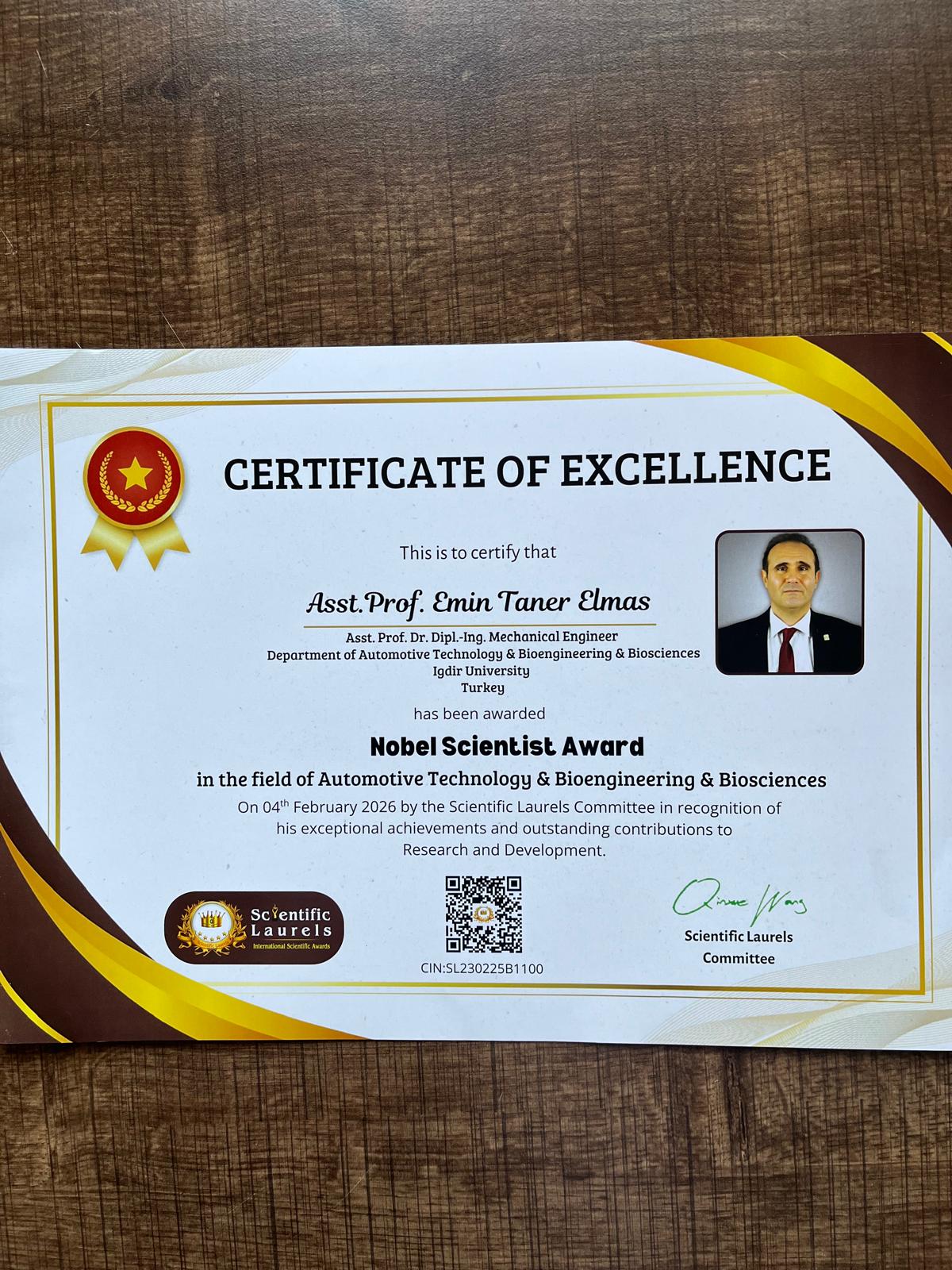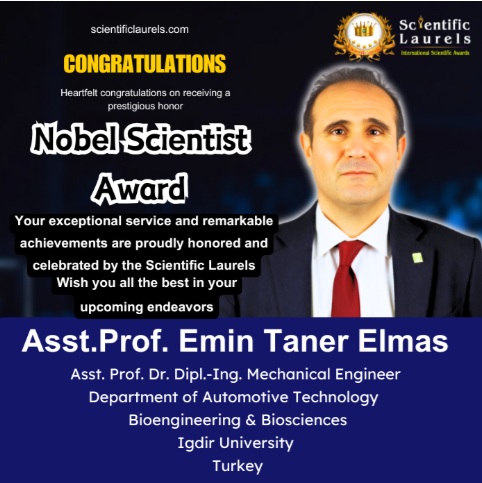 Birimimiz öğretim üyelerinden Dr. Öğr. Üyesi Emin Taner ELMAS Scientific Laurels platformundan ödül